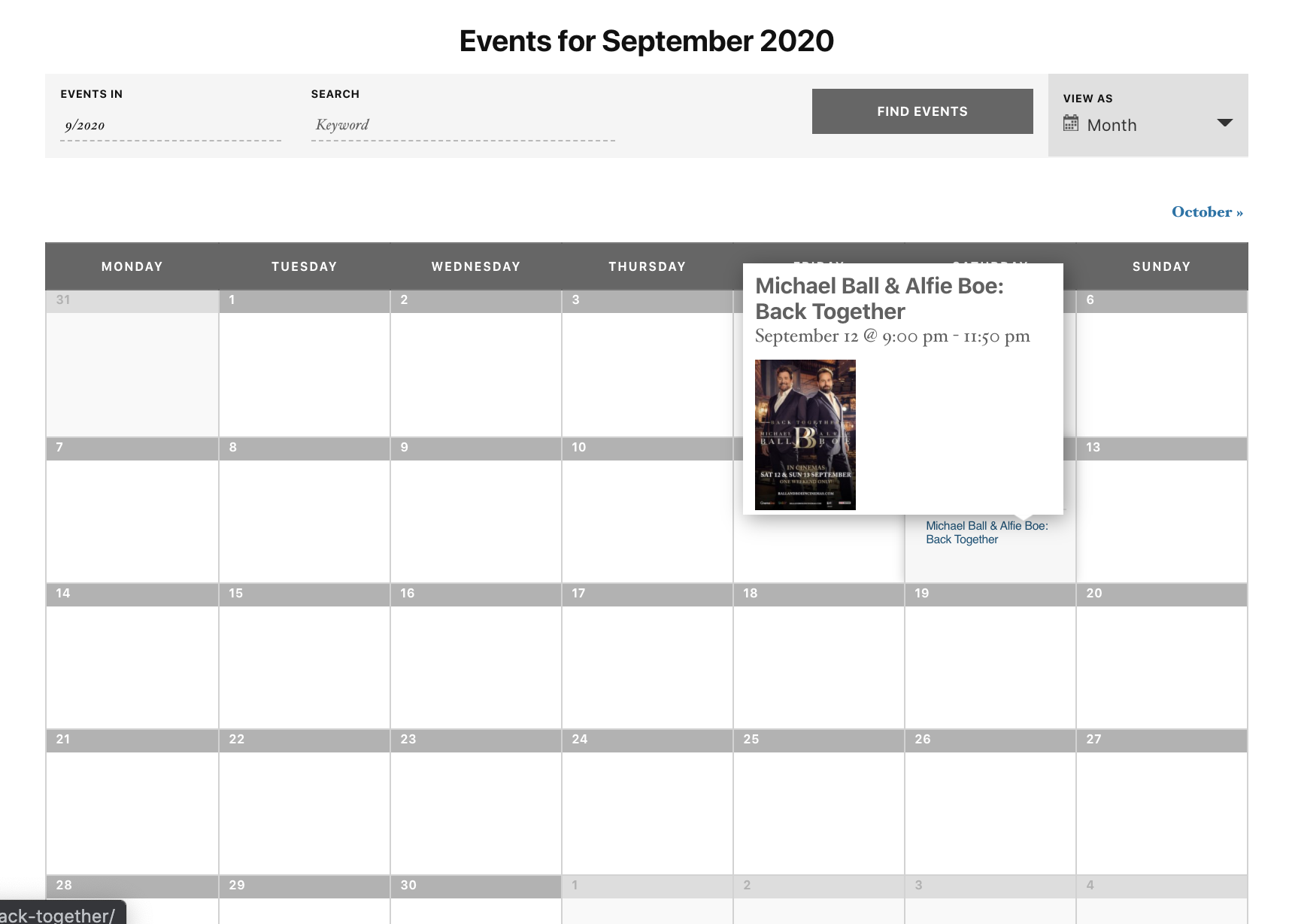 You now see a beautiful overview with events, including a datepicker, keyword search and different view options: