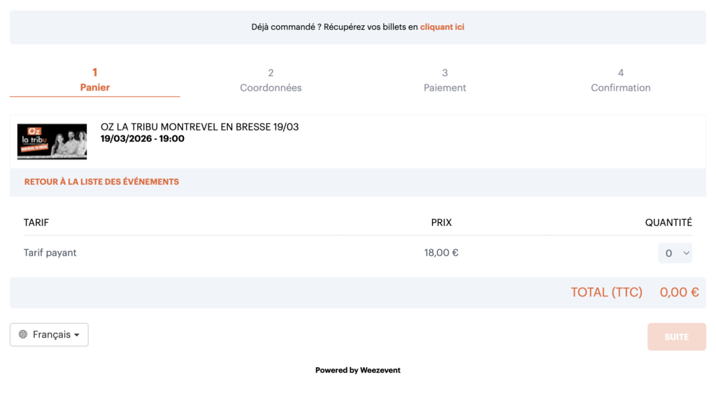 Clicking on the tickets link automatically leads visitors to the corresponding Weezevent ticketing page: